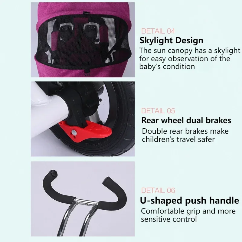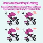 [Full Wrap Sunshade]We've got your baby covered ! The tricycle comes with a full wrap sunshade made of high-quality material, providing excellent protection from the sun's harmful rays. With a unique snap-on design, it opens up like a helmet, shielding your little one from all angles.