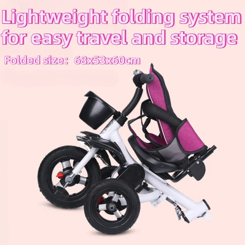 [Foldable Design, Convient To Travel]Say goodbye to bulky strollers! Our tricycle features a smart foldable design that makes it super easy to store and travel with. Simply fold it up and pop it in the trunk for your next adventure.