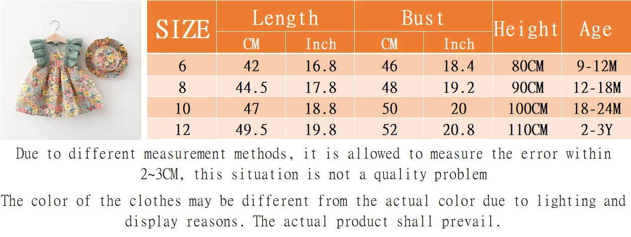 Size 8 —— Length: 44cm —– Bust: 48cm —— appropriate height: 80-90cm —— appropriate weight: 11-13kg —— Recommended age: 12-18month
